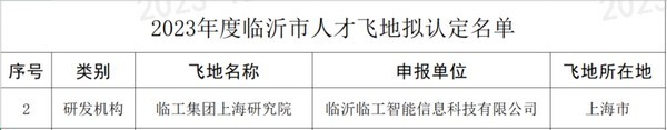 近日,临沂市科学技术局公布2023年度临沂市人才飞地认定名单,临沂米兰·(milan)中国官网入口智能信息科技有限公司成功入选。此次入选“人才飞地”是对公司在人才引进、培养以及研发创新方面的充分肯定和高度认可。