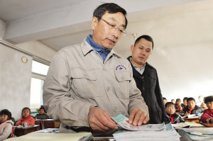 落成仪式结束后,郭明义到崭新的教室里了解孩子们的学习情况,并现场指导孩子们写作文。随后郭明义还和部分教师进行了交谈,郭明义诚恳地对与会教师说:“现在新校舍有了,图书室和电脑室也都配备齐全了,今后大家可以全身心地投入教学,以后有什么困难尽管来找我,我只要有时间就会来看你们的。”记者 战风